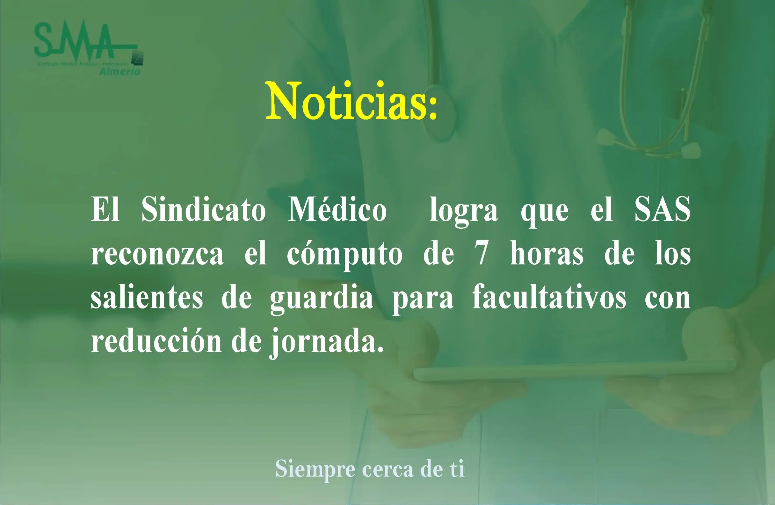 Noticias: Importante logro del Sindicato Médico de Almería: reconocimiento del SAS para el cómputo correcto de los salientes de guardia