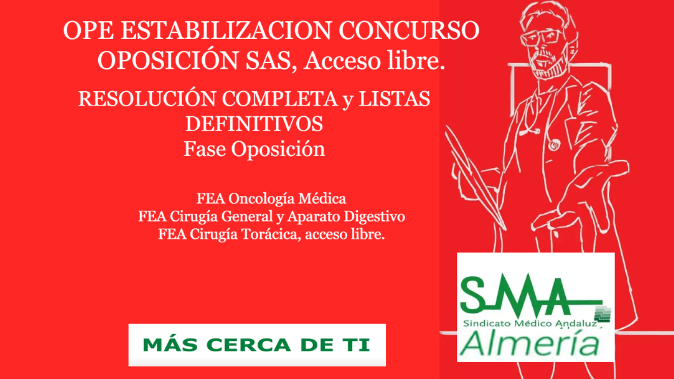 Aprobar las relación de aspirantes que han superado las pruebas selectivas de oposición por el sistema de acceso libre de FEA Oncología Médica, Cirugía General y Aparato Digestivo y Cirugía Torácica ordenadas alfabéticamente con indicación de la nota. La persona aspirante que no figure incluida tiene la consideración de no apta.
