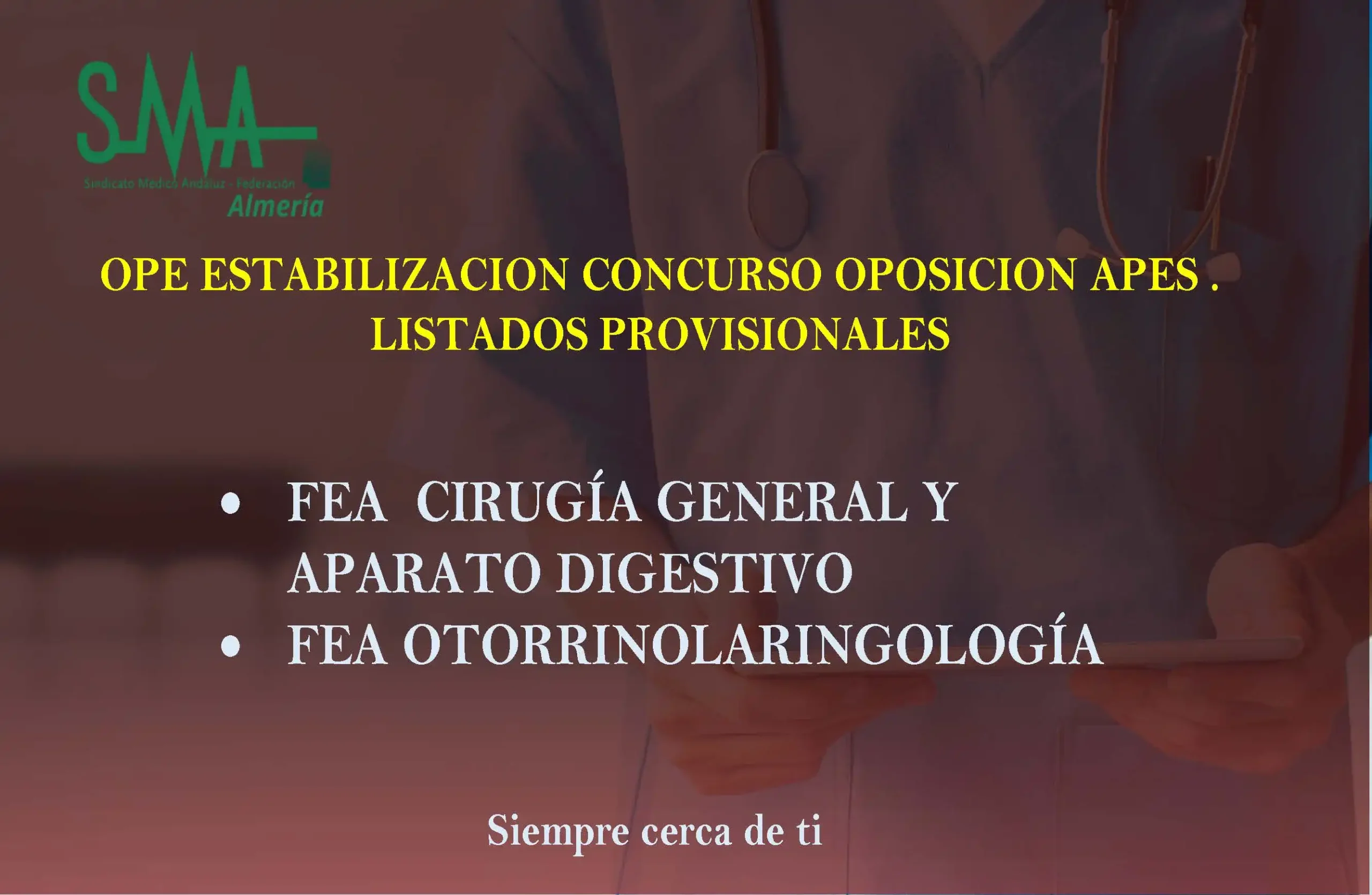 ¡Atención aspirantes a FEA Cirugía General y AD. FEA Otorrinolaringología! ¡Publicación de listas provisionales!