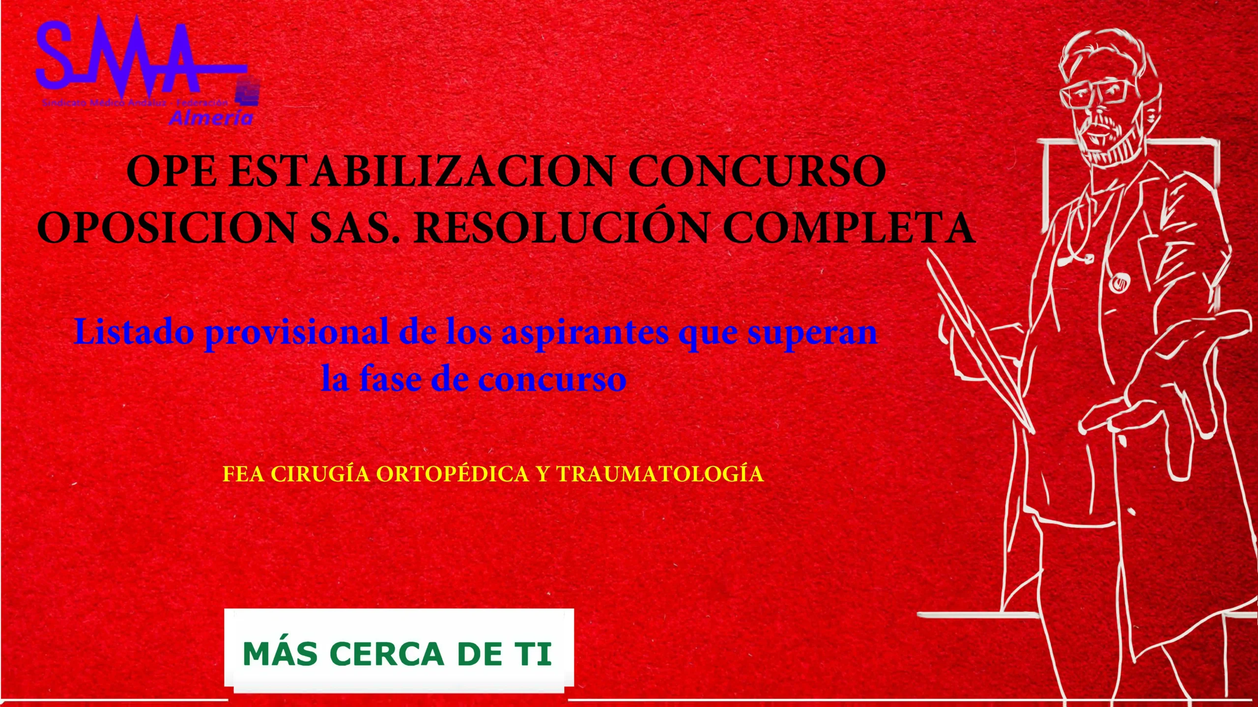 Aprobar las listas provisionales de personas aspirantes que han superado las pruebas selectivas de concurso por el sistema de acceso libre de FEA Cirugía Ortopédica y Traumatología, en orden de puntuación en cada uno de los apartados del baremo de méritos, y la puntuación total obtenida en las pruebas selectivas de concurso.