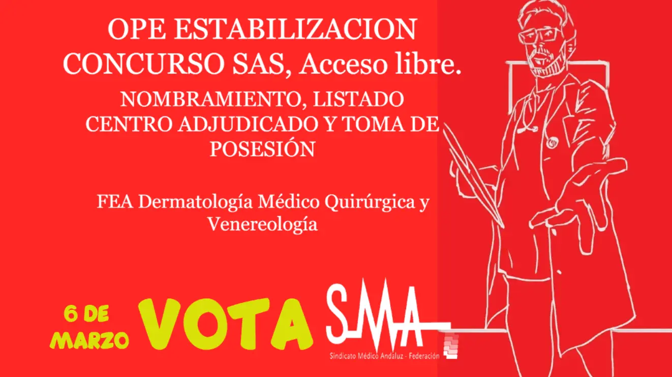 OPE ESTABILIZACION CONCURSO SAS. NOMBRAMIENTO, LISTADO CENTRO ADJUDICADO Y TOMA DE POSESIÓN. FEA Dermatología Médico Quirúrgica y Venereología, acceso libre