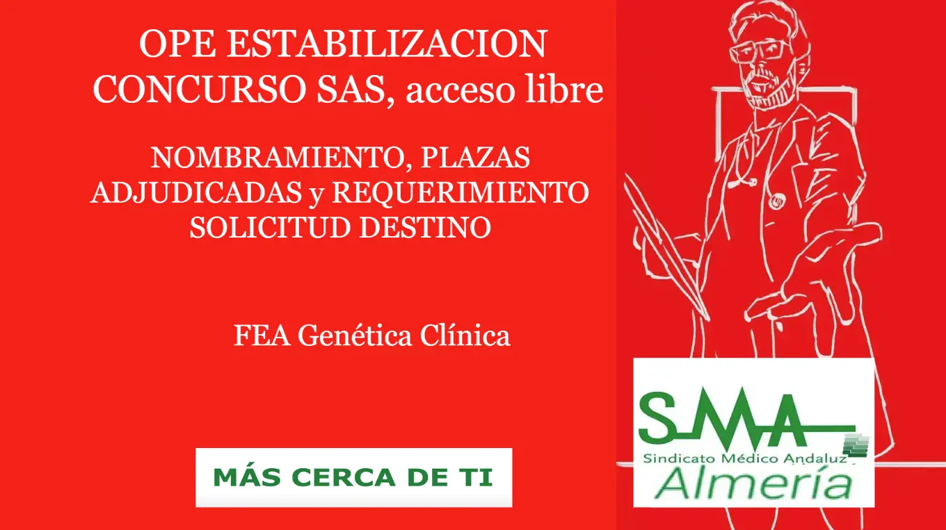 OPE ESTABILIZACION CONCURSO SAS. RESOLUCIÓN COMPLETA, NOMBRAMIENTO, PLAZAS ADJUDICADAS y REQUERIMIENTO SOLICITUD DESTINO. FEA Genética Clínica, acceso libre.
