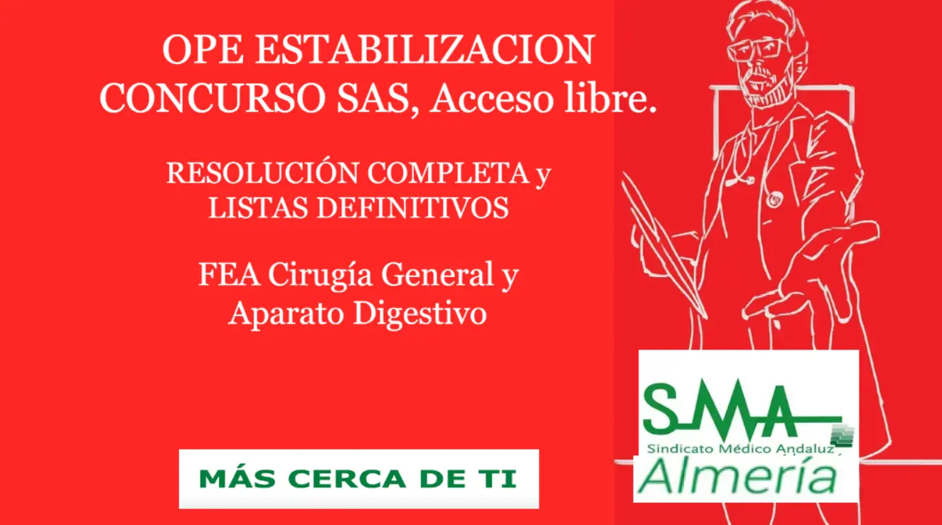 Aprobar las listas definitivas de personas aspirantes que han superado las pruebas selectivas de concurso por el sistema de acceso libre de FEA Cirugía General y Aparato Digestivo, en orden de puntuación en cada uno de los apartados del baremo de méritos, y la puntuación total obtenida en las pruebas selectivas de concurso.